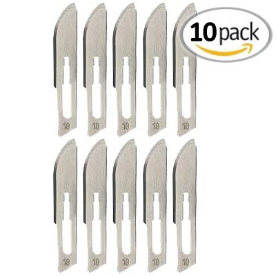 Set of 10 sterile surgical blades made from carbon steel, made for medical use, but ideal for hobby and precision applications.