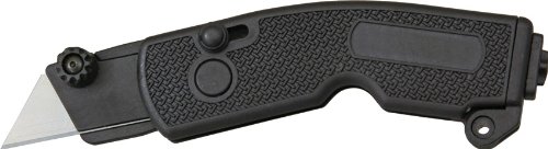 Cross Fire Utility Knife Boxed 4 3/8" closed. One hand opening black composition casing with dual thumb studs that holds utility blade. Black textured fiberglass reinforced nylon handles with mechanism that locks blade in open position. Black pocket clip. Extremely light. Stores up to four extra blades in handle. No tools needed to change blade. Four extra utility blades included. Lanyard hole [else][endif] [if ]